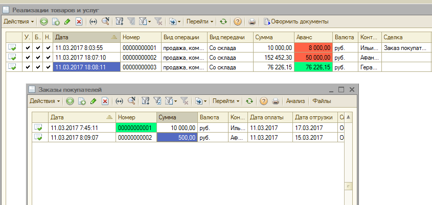 Теперь визуально можно отследить, по каким заказам была создана реализация.
