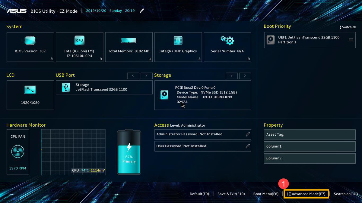 После входа нажмите горячую клавишу F7 или с помощью курсора выберете Расширенный режим (Advanced Mode F7)