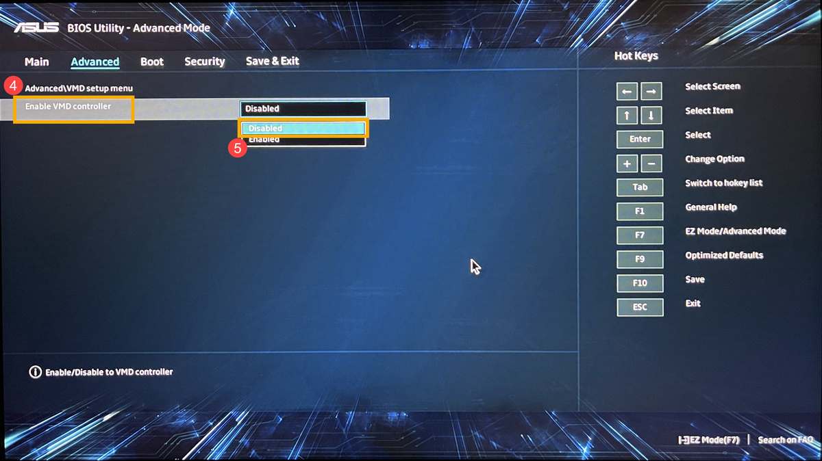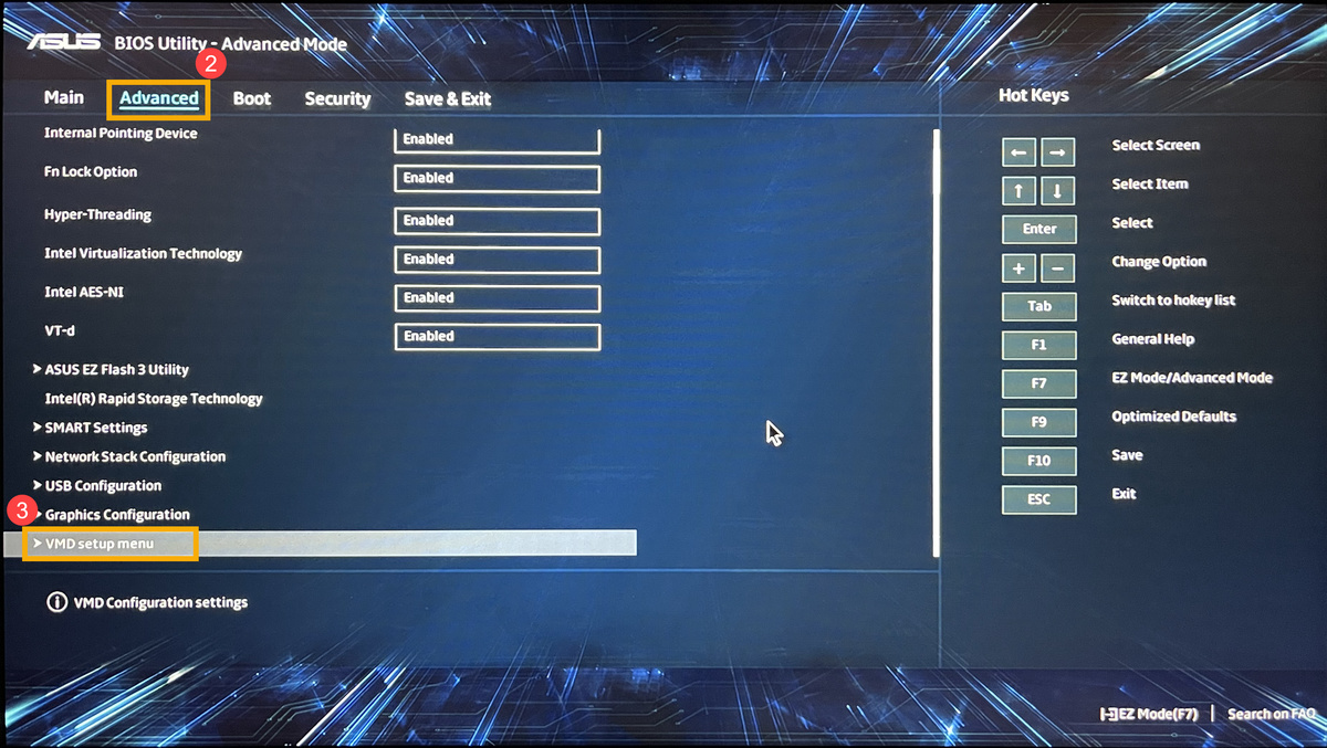Отключение технологии Intel Volume Management Device (VMD) в BIOS