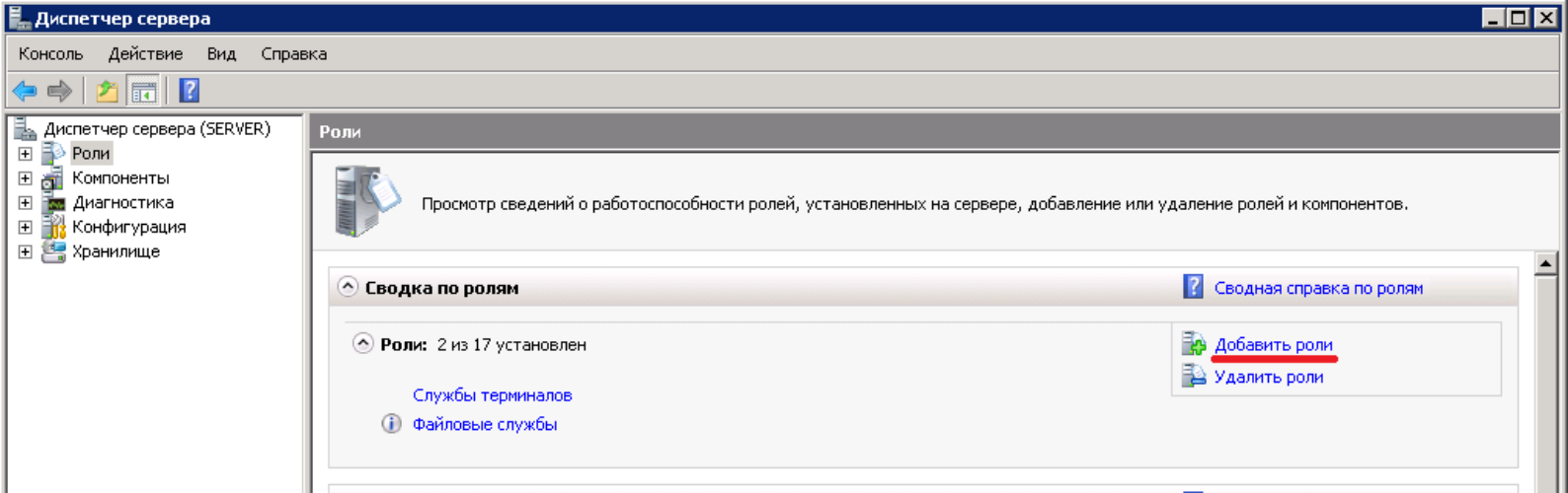 Необходимо зайти в диспетчер сервера и нажмать "Добавить роли"