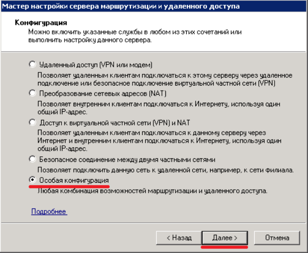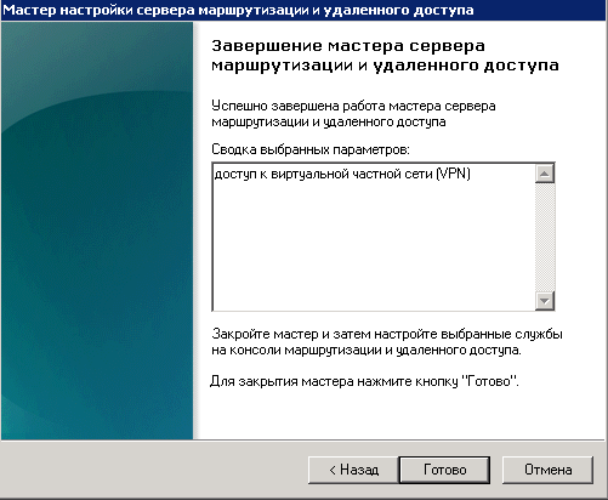 - настройка сервера маршрутизации и удаленного доступа с помощью мастера