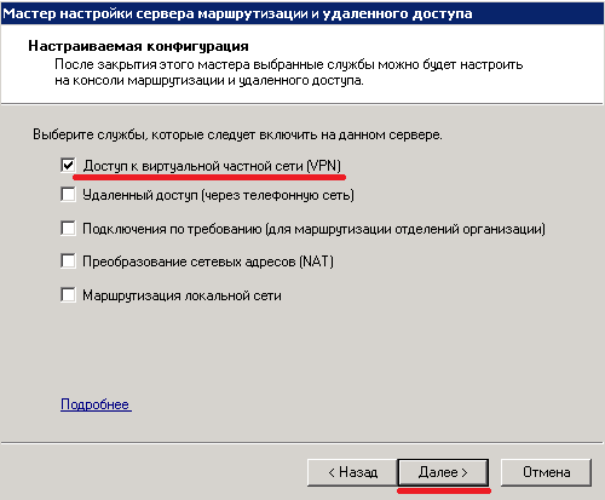 Кликаем на "Доступ к виртуальной частной сети (VPN)", далее.