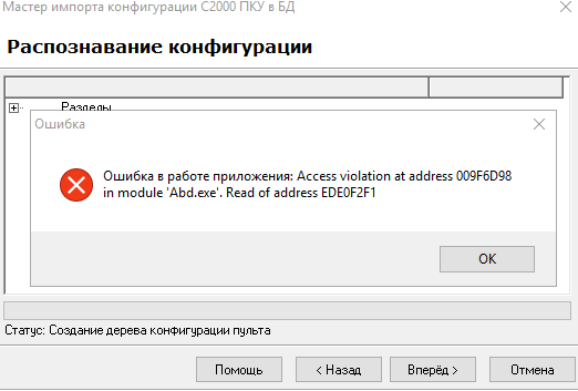 При загрузке файла возможно вылетит ошибка "Ошибка в работе приложения: Access violation at address 009F6D98 in module 'Abd.exe'. Read of addredd EDE0F2F1", но в ней ничего срашного нет.