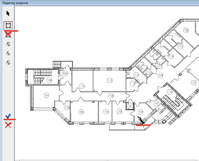 - Добавление разделов в плане помещений