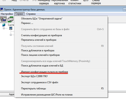 Для того, чтобы добавить приборы в программу, необходимо сделать выгрузку файла конфигурации приборов из программы Pprog. После выгрузки, через менеджер загрузки конфигурации загрузить конфигурацию приборов в ПО «Орион Про».