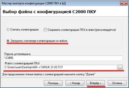 - Импорт файла конфигурации из программы Pprog