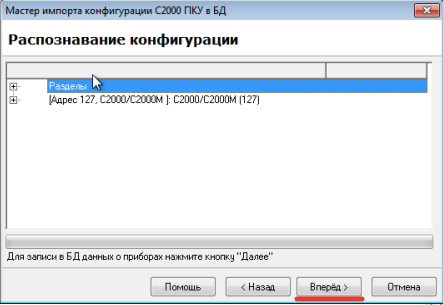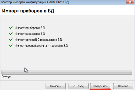 Запуск мастера импорта конфигурации